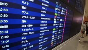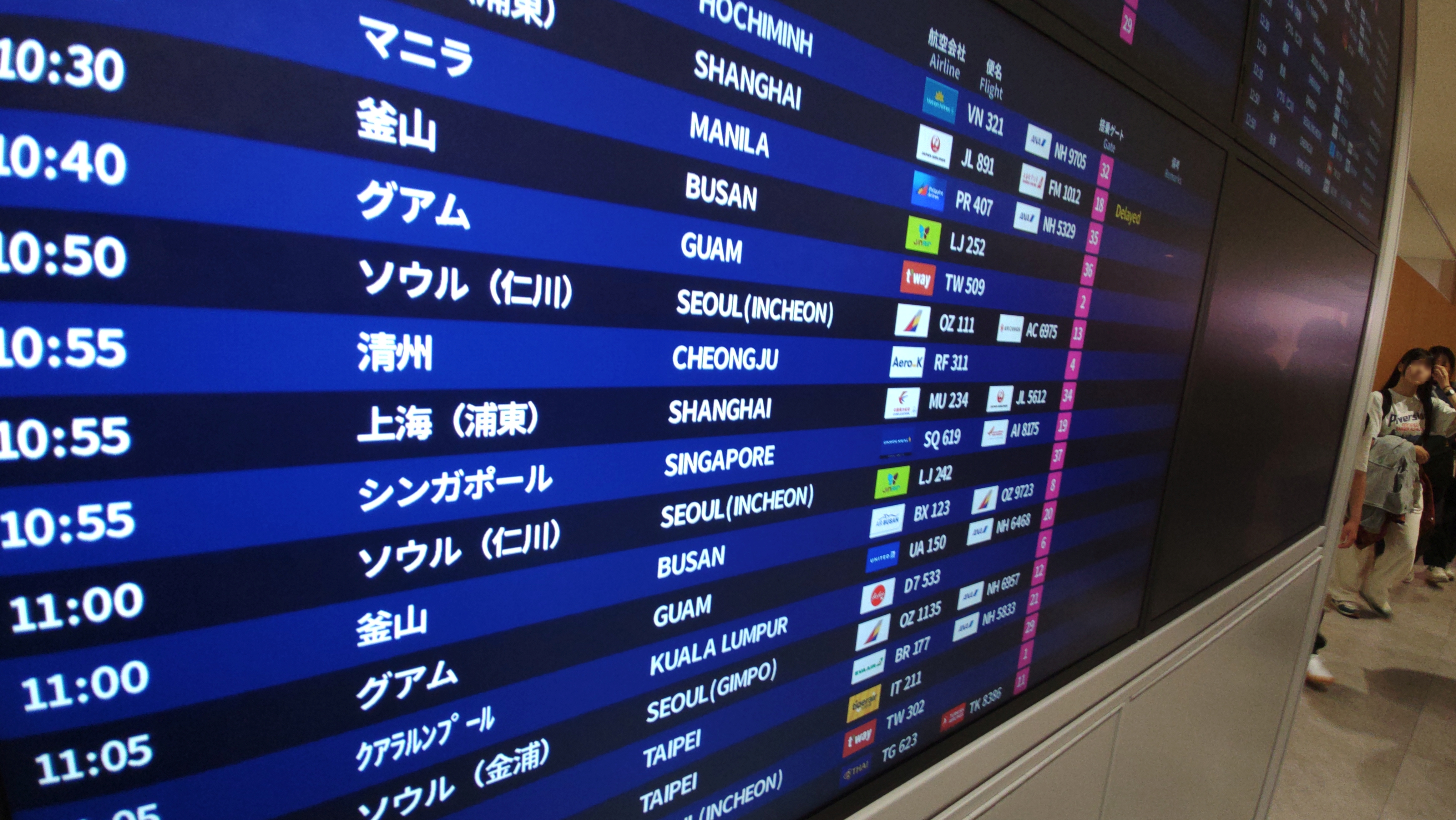 国際線は搭乗開始が早いので,早めに搭乗口へ.関空でなぜか北海道がいっぱい. |
