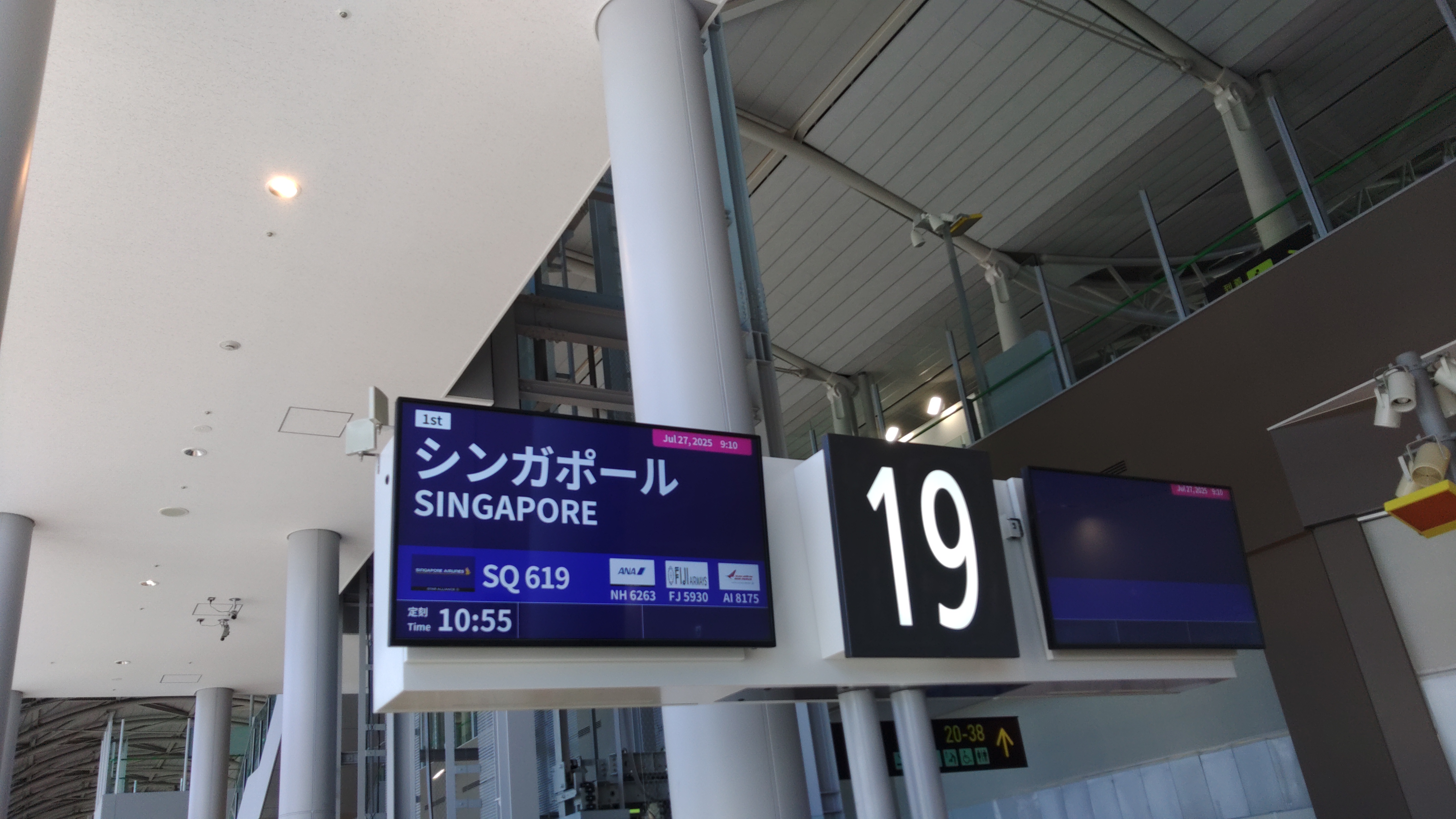 10:55発のSQ619便.便番号が奇数の場合は日本発,偶数の場合は日本着の場合が多い. |