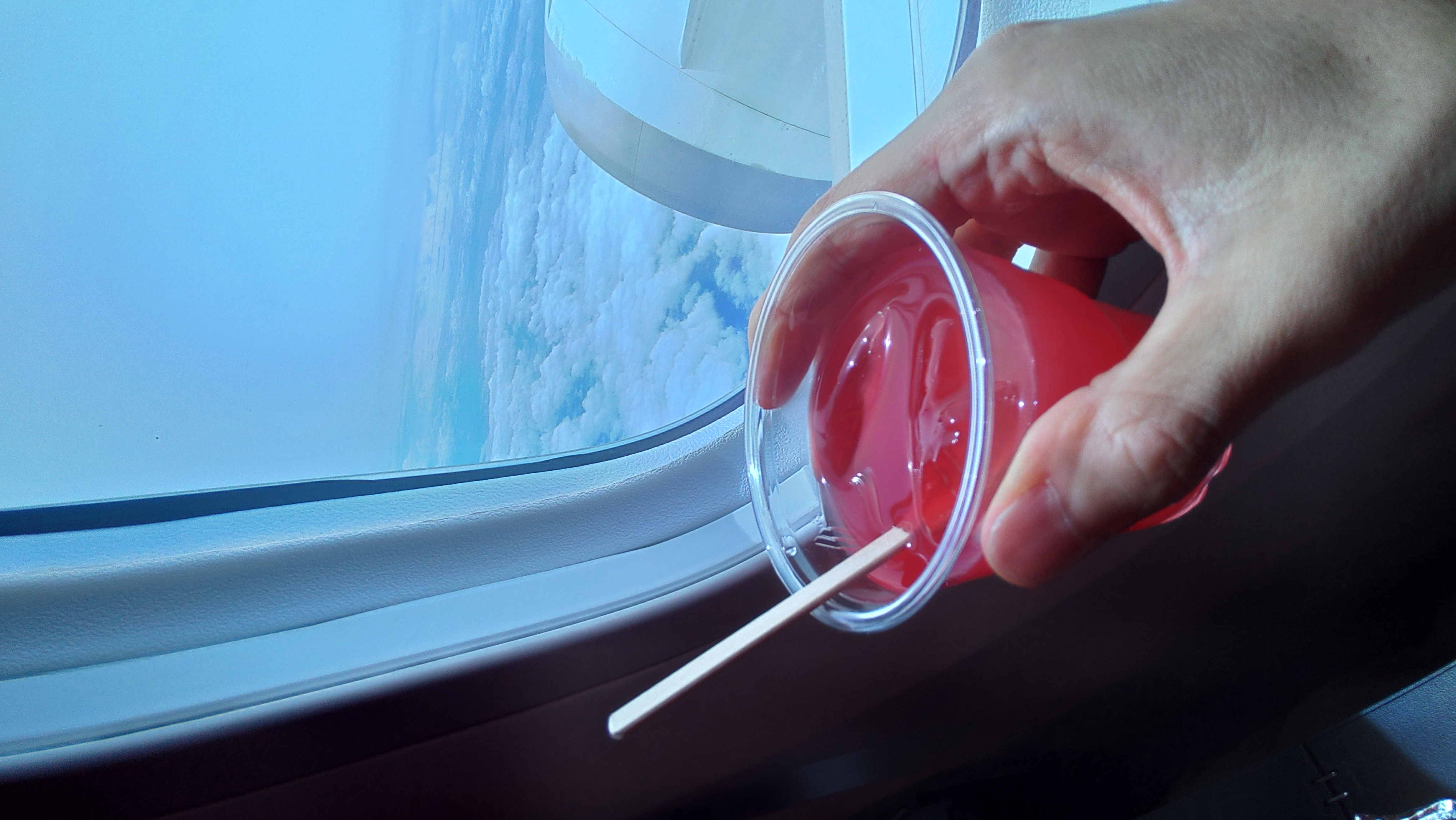 添えるドリンクは,シンガポール航空だからこその機内サービスであるシンガポール・スリング.美しく穏やかな空を横目に最高. |