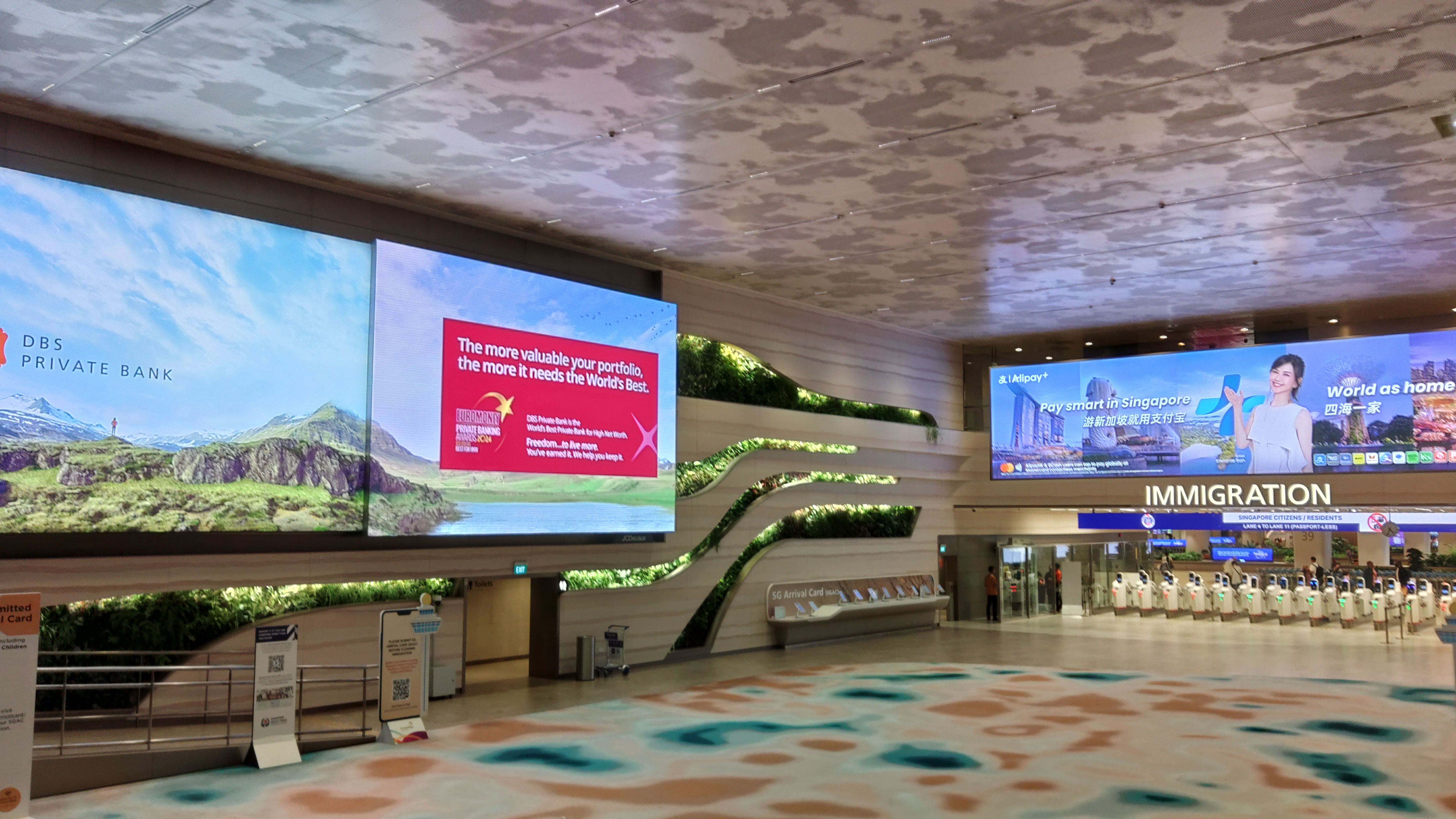 前回,2019年に来た時は有人対応のみで長蛇の列だった入国審査が,完全自動化されて人っ子ひとりいない.一瞬,間違った場所へ来たかと思ったくらい静かすぎて驚愕.そして拍子抜け. |