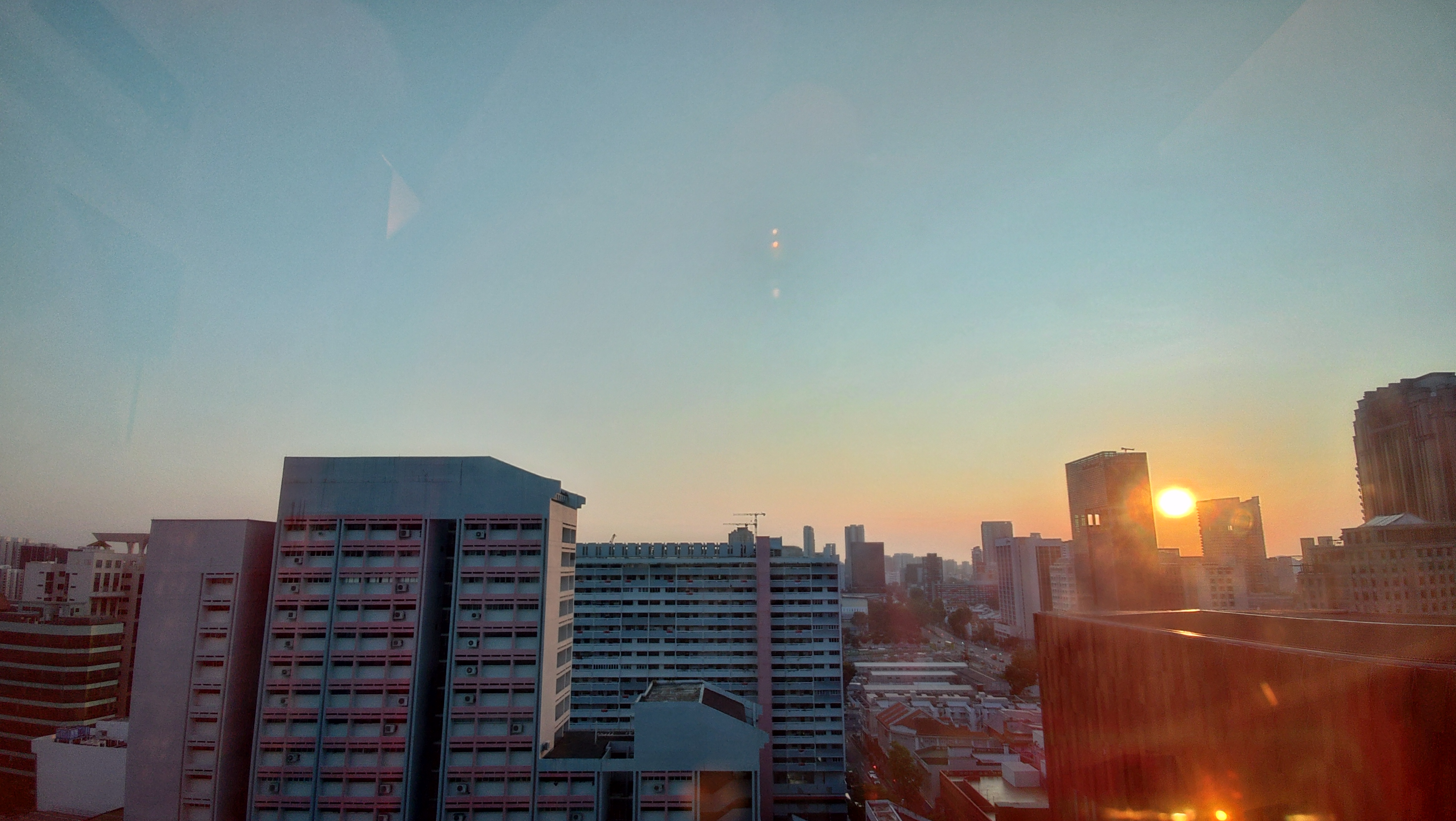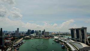 ホテル屋上から南(サンテックシティやベイエリア)方向の眺め.前回(6年前)からの間でも高層ビルが倍ぐらいに増えた気がする. |