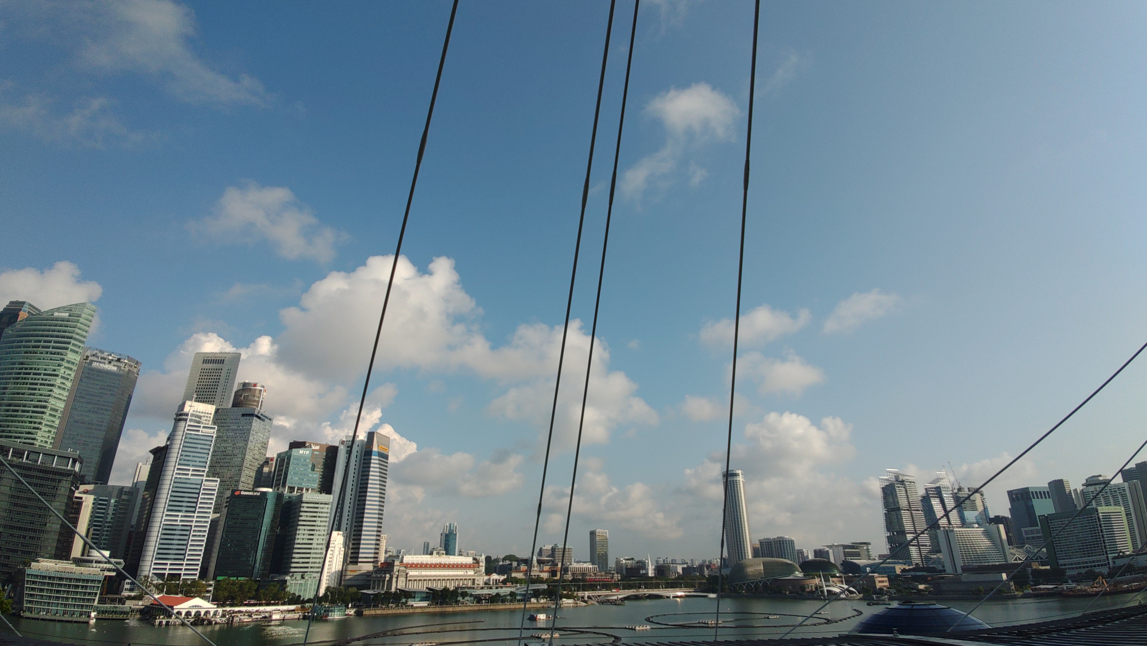 学会会場から,ラッフルズ・プレイスとシティ・ホール方向を.良く見ると中央にマーライオンもいます. |