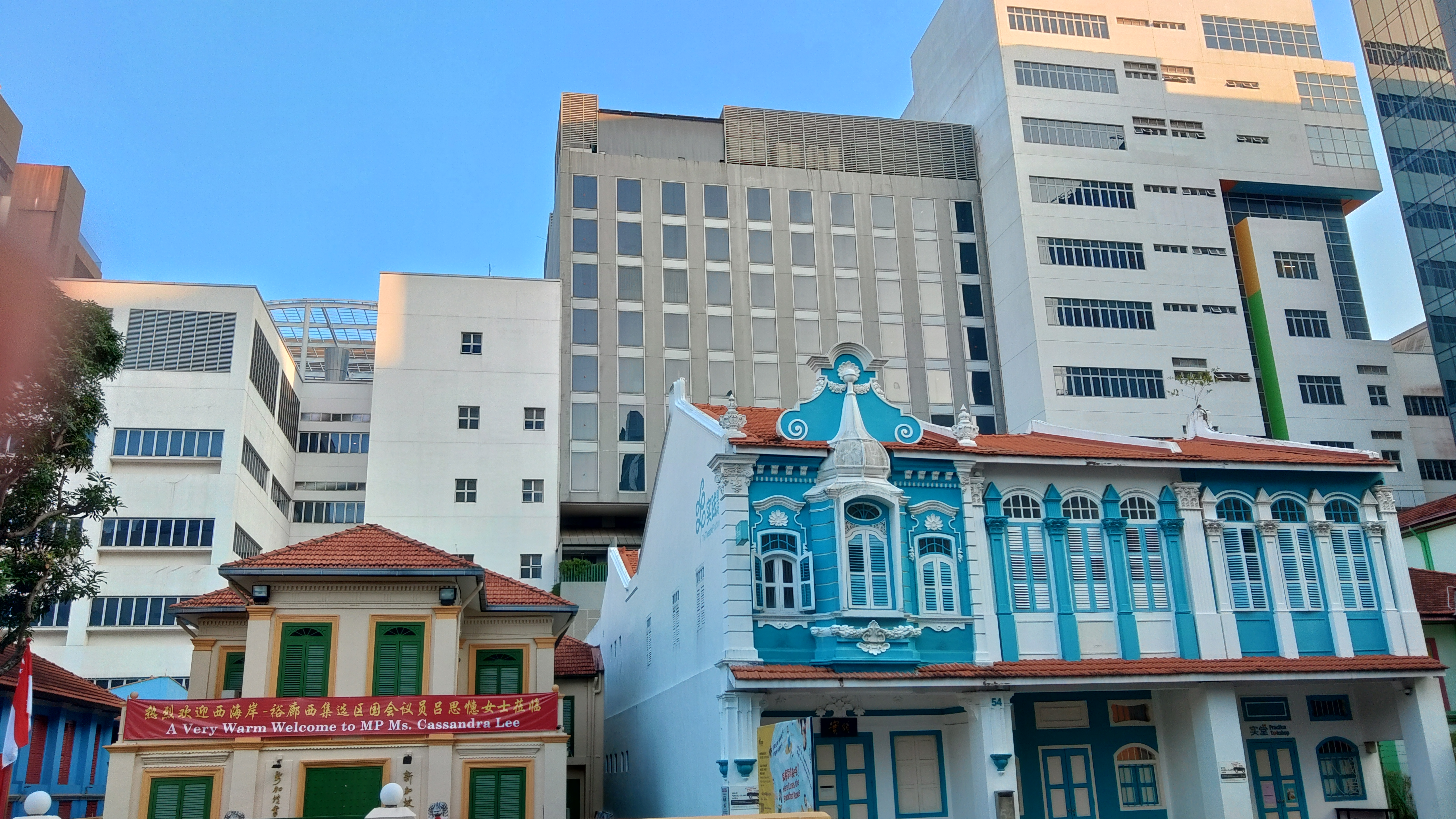 街のあちこちにこういうカラフルな建物が遍在しているあたりが,シンガポールっぽい. |
