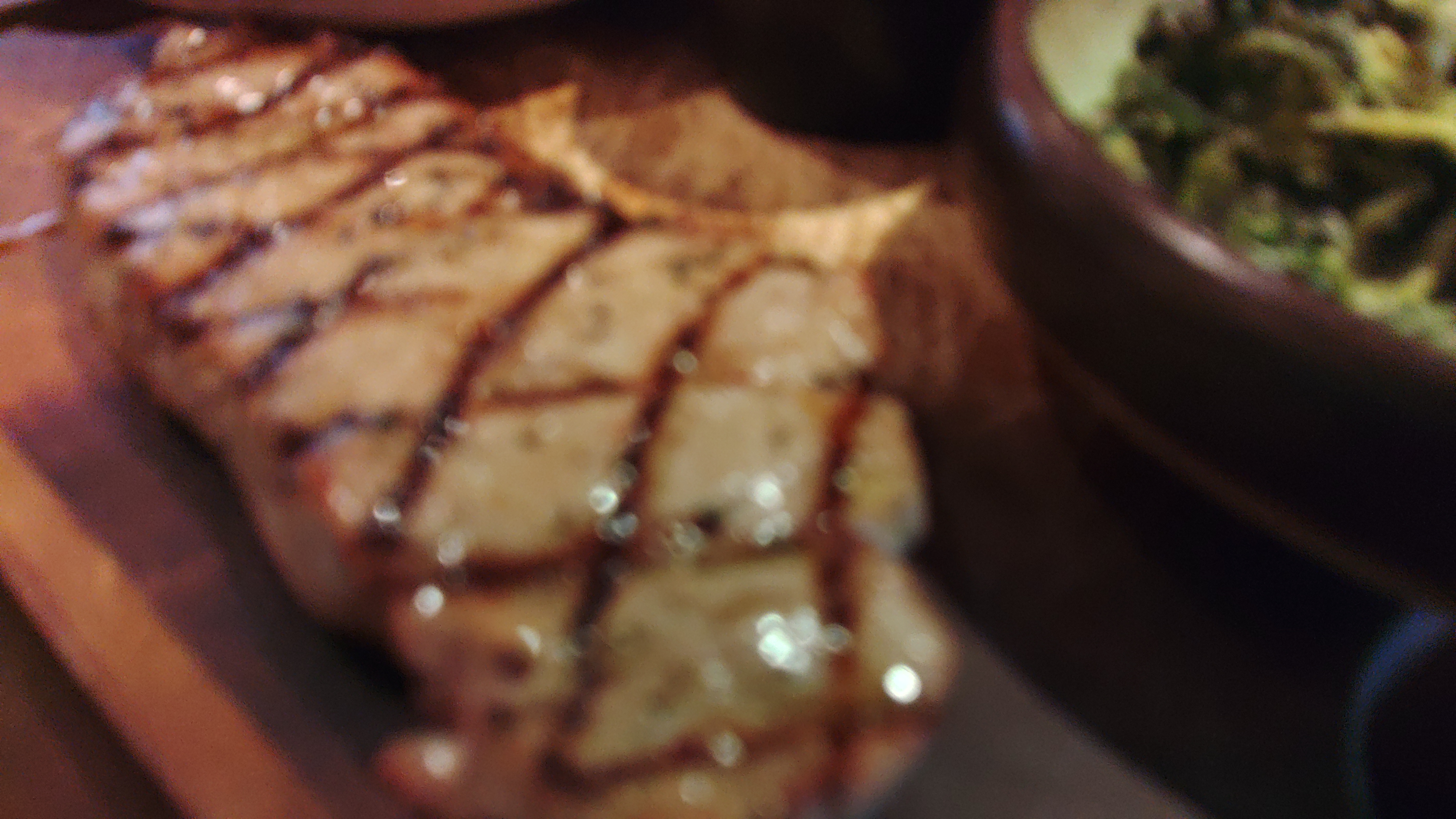 発表終わりには肉が食べたくて,ブギスのグリル「BREWGRILLZ」でサーロインステーキ200 g.食べたい気持ちが前のめり過ぎて,ピントすら合っていない. |