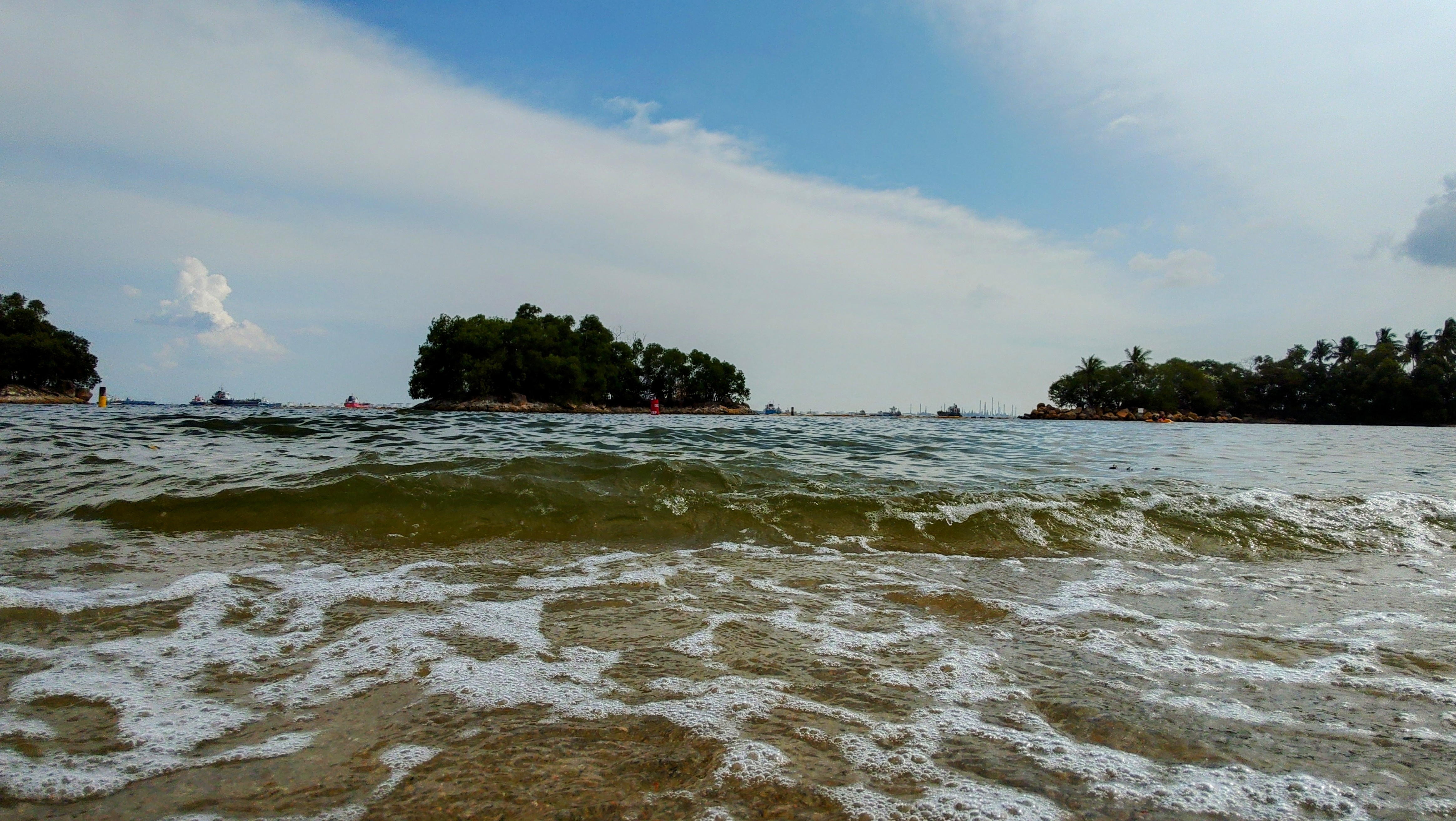 あの有名な海運の要衝マラッカ海峡から続くシンガポール海峡.その向こうはインドネシア. |