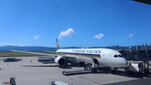 国内線は青組の私だけど関空からはシンガポールへのANA直行便がないので,SQで. |
