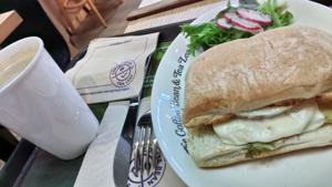 カフェチェーン「The Coffee Bean & Tea Leaf」はシンガポールにもあちこち.パニーニで朝食. |