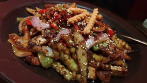 ブギスとシティ・ホールの間,レストランが並ぶLiang Seah通り沿いにあるチャイニーズ「Kuan Kuan」で,看板料理のSpicy Dry Hot Potを.肉と野菜の唐辛子炒めのような感じ. |