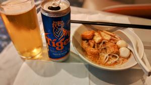 やはりここは,ラクサにタイガービール. |